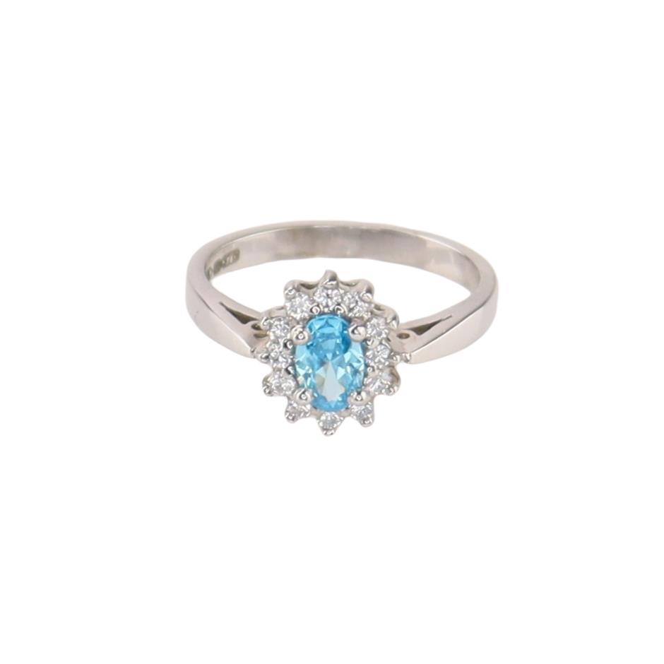 The mesmerising flashes of pristine blue zircon garners the ring an ethereal beauty