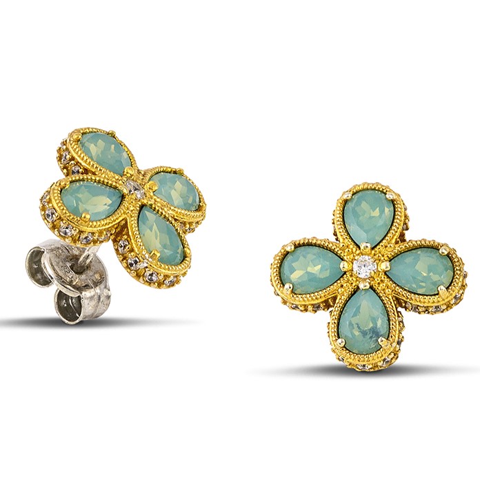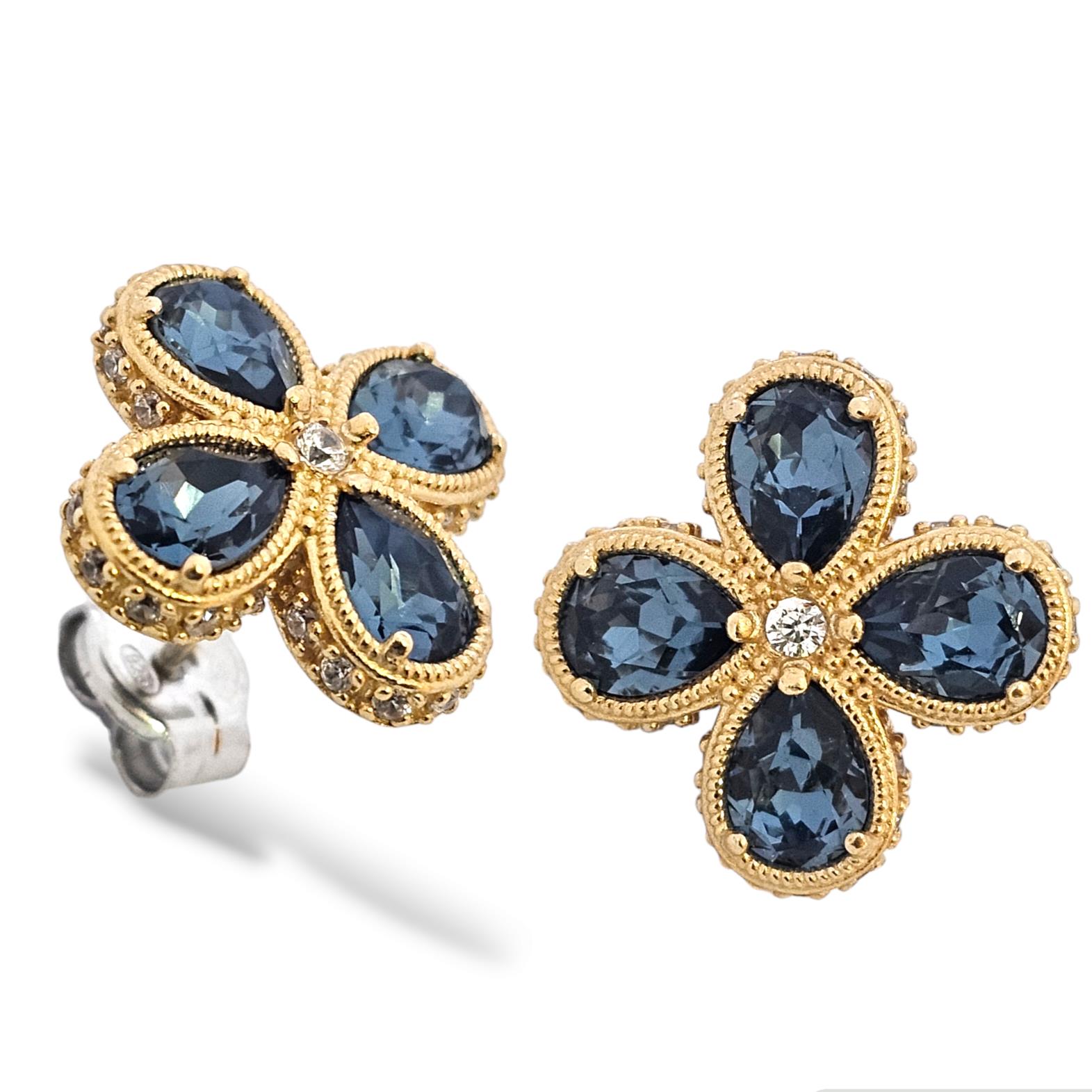 FloraL Post Earrings with Pear Shaped Swarovski Crystals and Zircon