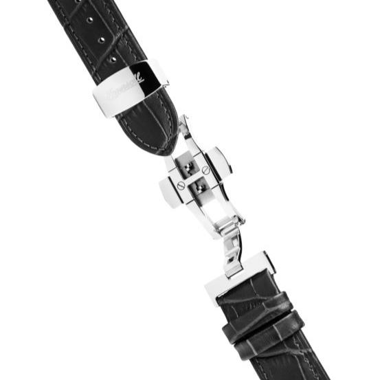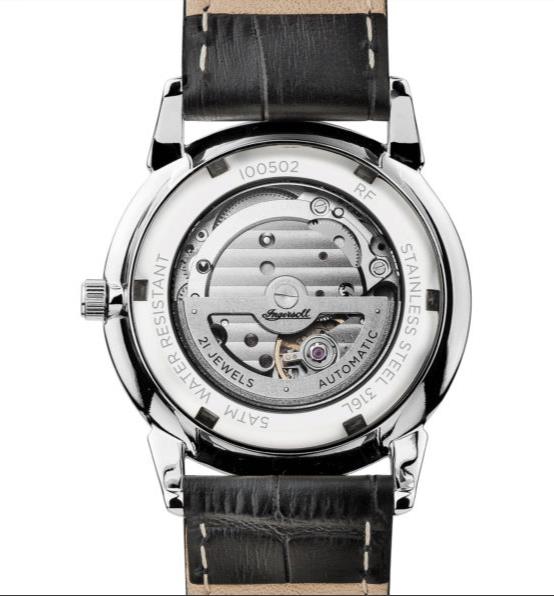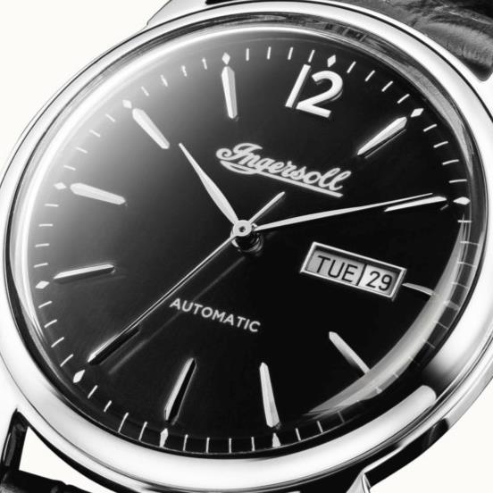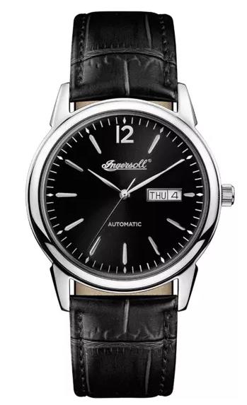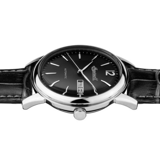The Ingersoll1892 I00502 – The New Haven – is a Automatic watch and shows the following functions – hours, minutes, seconds, date. The Dial Colour is Black. The case shape is Round. The case material is Stainless Steel and is Polished. The size of the watch is: Height 40mm, Width 40mm, Depth 14mm. The Ingersoll1892 I00502 The New Haven is Water Resistant till 50m. The strap of the I00502 The New Haven watch is Strap . The colour of the strap is Black. The material of the Ingersoll I00502 The New Haven is of Leather. The finish of the strap is Polished. The length of the strap is 25 cm and the width is 21 mm. The clasp Type of the watch is Folding Clasp. The weight of the Ingersoll I00502 The New Haven is 73 Gramms. The glass type of the The New Haven is Mineral glass. The warrenty period of the watch is 2 year.