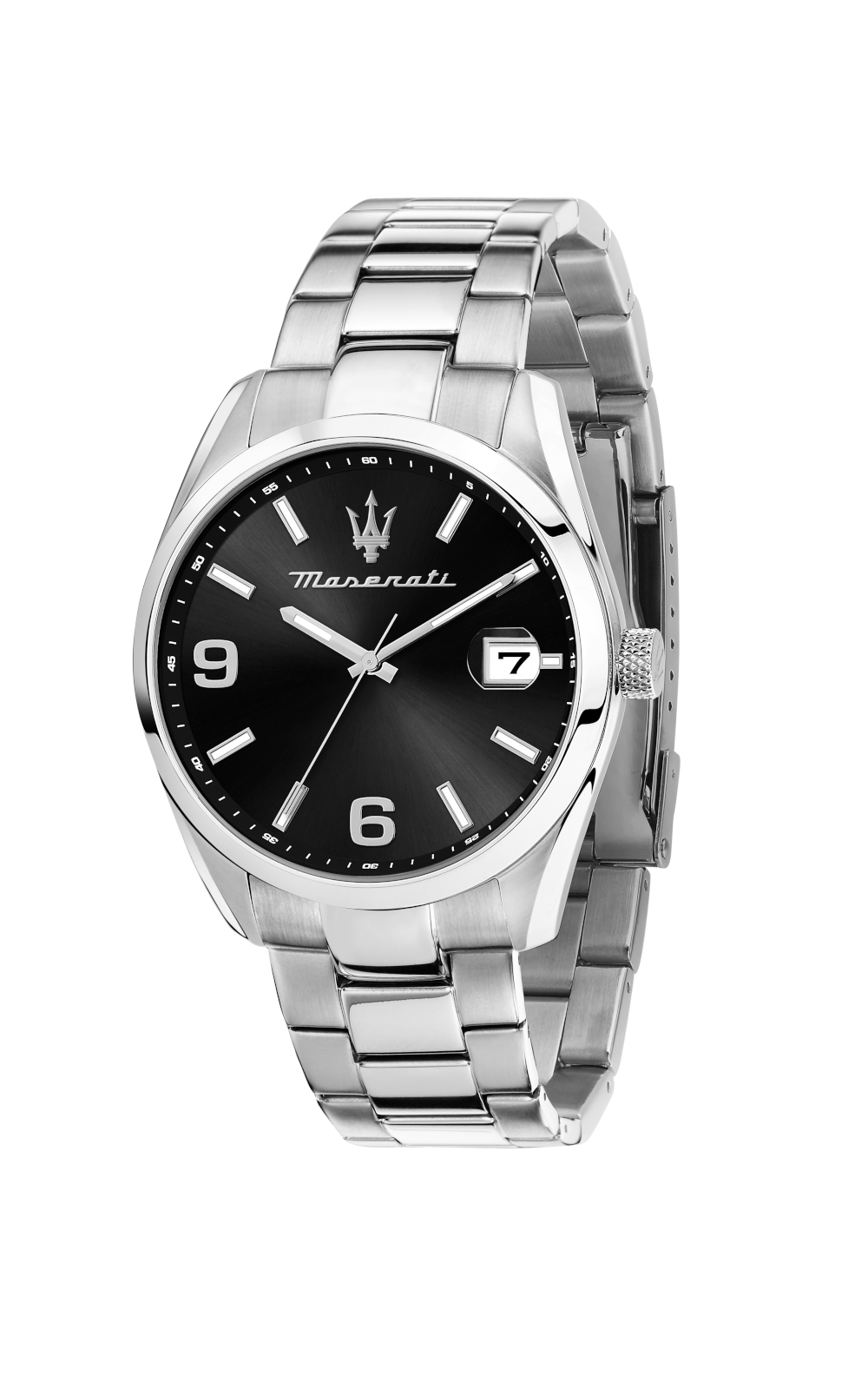 Maserati Attrazione R8853151007 mens watch is an accessory with a smart casual character and a classic color palette. Both the envelope and bracelet of the model are made of silver stainless steel. They are juxtaposed with a black polished dial, which is protected by mineral glass. At the height of three oclock there is a date of the days of the month. The quartz mechanism takes care of the correct operation of the product.