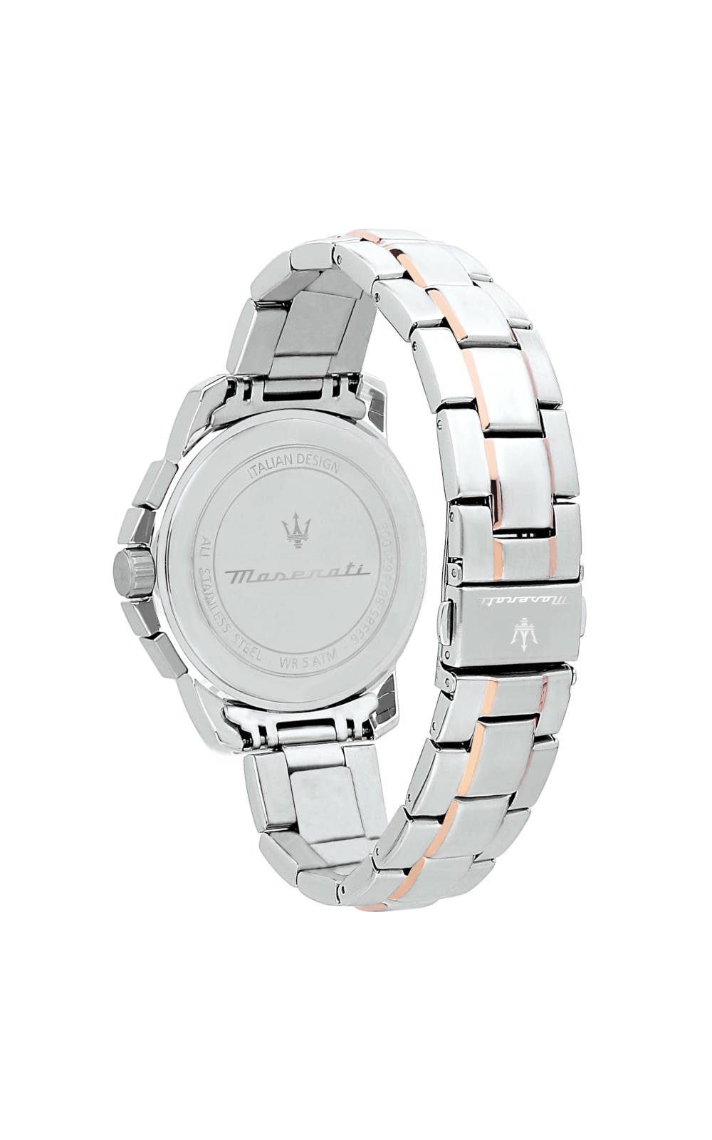 This Maserati watch has a stainless steel case 44 mm in diameter and is fitted with a metal strap. Inside the case lies a Seiko Instruments Inc. movement and the watch features a Mineral crystal.