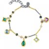 From the JASMINE collection, the two sided bracelet in the shape of rhombus in green, blue and pink Swarovski crystals with gold plated ornate bezels.